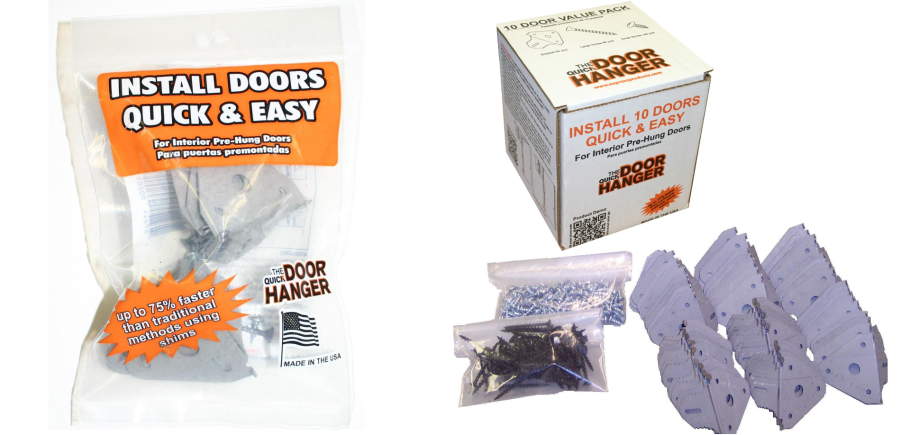 The Quick Door Hanger Bracket is a patented door installation system. This fail proof system allows for quick and hassle free door installation for beginners to pros! Whether you are a beginner or a pro, this is simply the easiest and fastest way of hanging professional doors that are perfectly plumb and have a perfect reveal. Up to 5x faster than shimming a door!