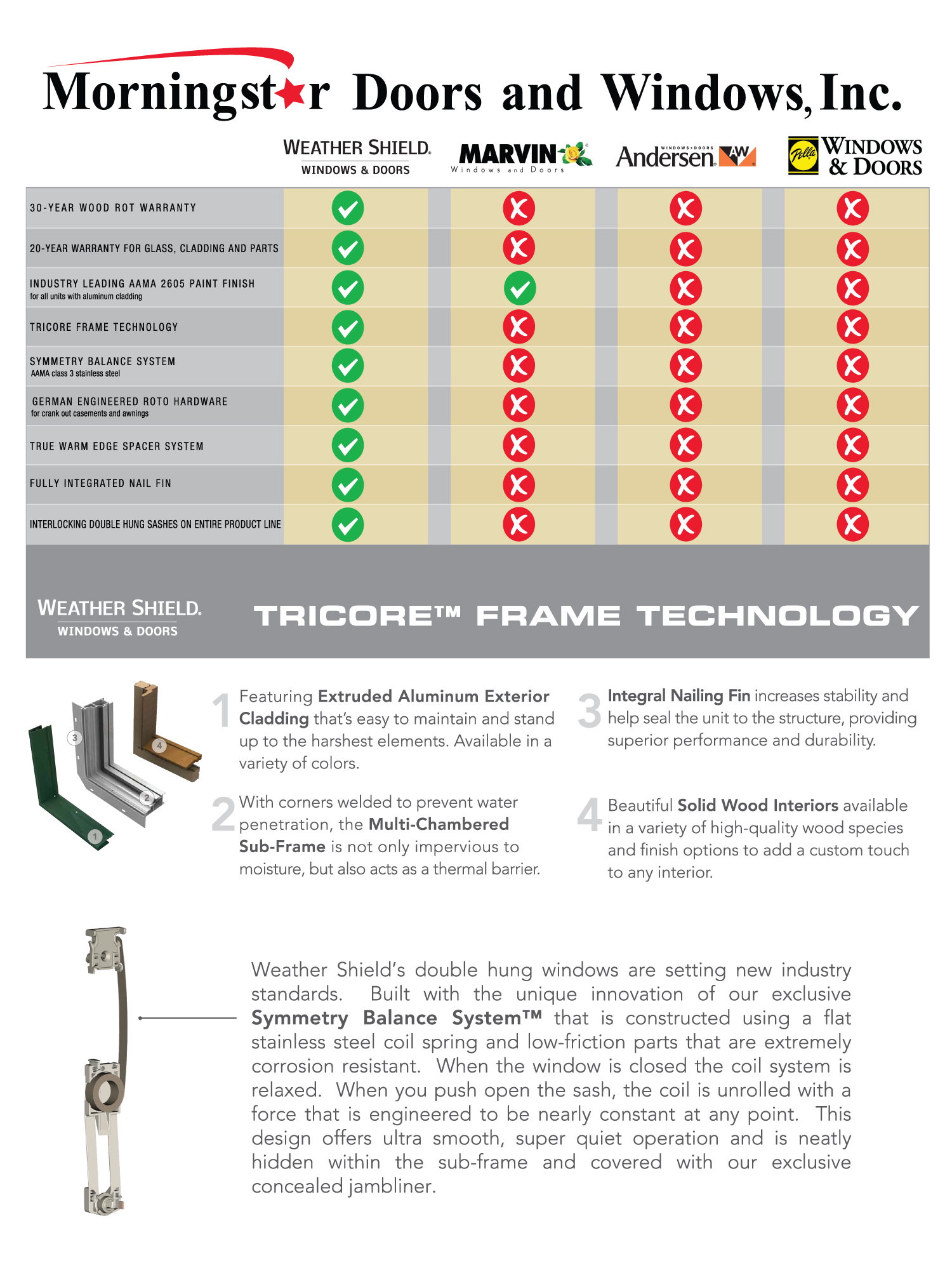 Together, they deliver outstanding operational performance and superior resistance to air and water infiltration. The Symmetry Balance System allows units to operate smoothly and with little effort,